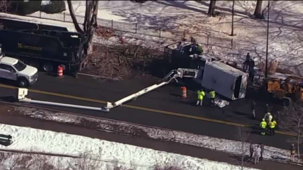 Memorial Drive partially reopens hours after bucket truck overturns