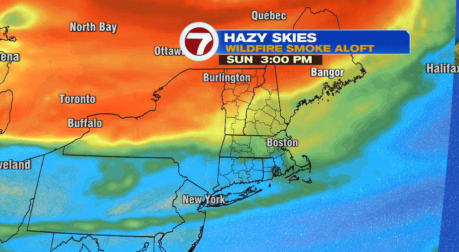 Another nice day is in the forecast Sunday, however, Canadian wildfire smoke is heading towards New England. Expect to see some haze in the sky…