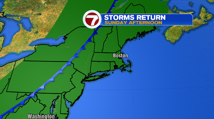 Showers and storms return to the forecast Sunday as a weather system heads towards New England. Rain will start as early as 7am in Worcester…
