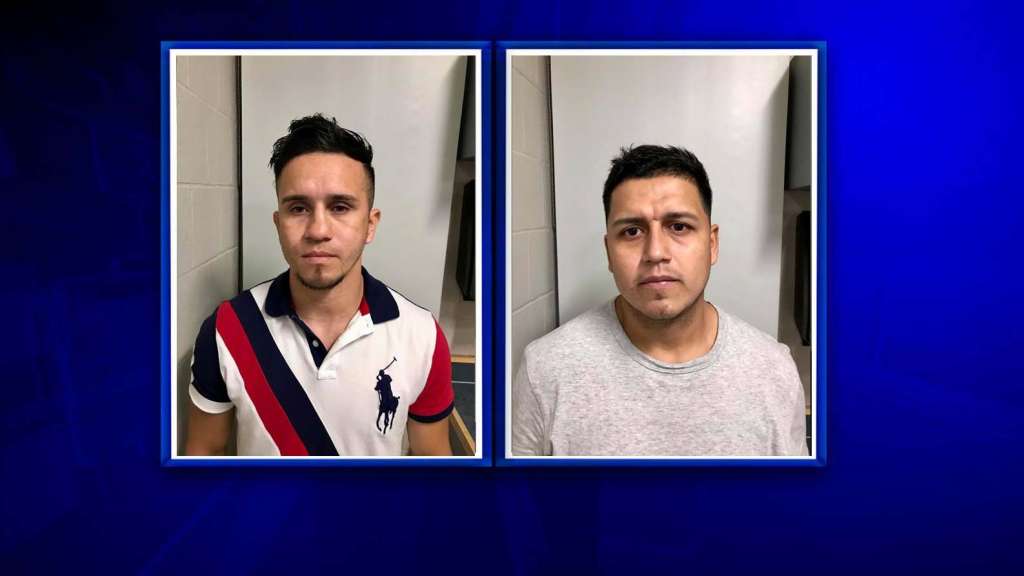 Wrentham police say Dennis A. Reyesmora and Carlos Kirby Ramona were taken into custody at the Wrentham Village Premium Outlets after they were accused of removing security sensors and stowing stolen merchandise in black trash bags in their car, according to a post on the department’s Facebook page.