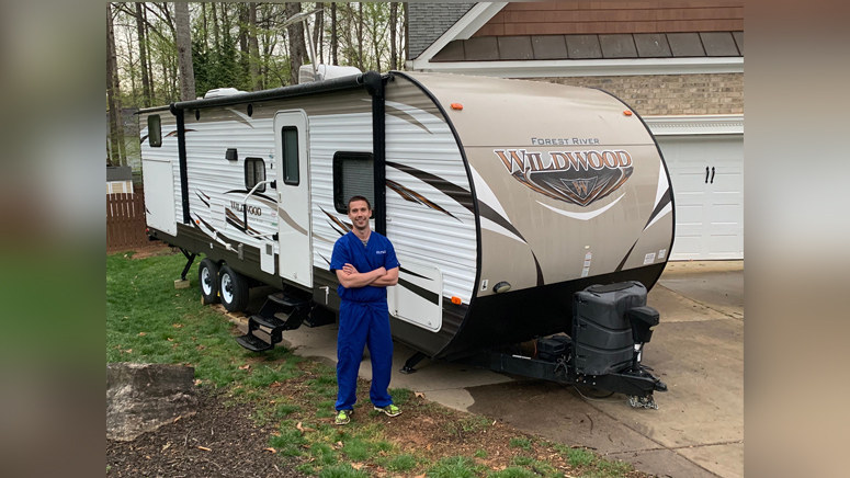 But today, Quale’s mind is more at peace because he’s able to isolate himself in a 31-foot travel trailer, and it’s all thanks to a Facebook group called RVs 4 MDs, which matches health care workers to local RV owners.
