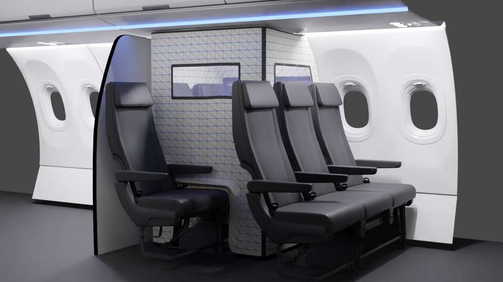 The barrier would encircle one seat row, cutting off three seats — including the one occupied by the symptomatic passenger.