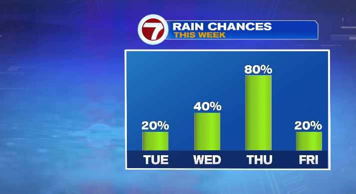 Wednesday will start in the upper 30s and low 40s with highs in the low 50s. Skies will be noticeably cloudier and they may produce some isolated showers at times. It will be breezy, too.