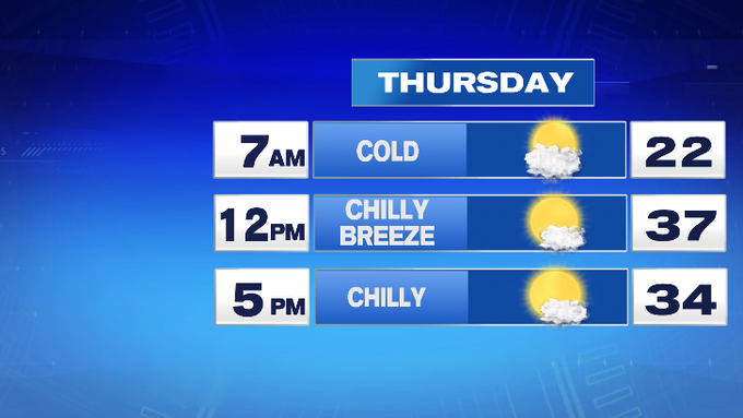 Tomorrow (Thursday) will be a cold start to a seasonably cool day. Overnight, we’ll have mainly clear skies majority of the night with light wind, which will allow temperatures to drop to the high teens/low twenties. We’ll see mainly sunshine for MetroWest, while parts of the South Coast, Cape and Islands could see a few more clouds. High pressure will be positioned to our south, initiating a SW wind that’ll stay breezy throughout the day. Highs will reach the upper 30s/near 40. Not bad… just yet.