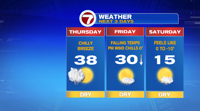7Weather – February begins with a chill, as we started the morning off in the teens and twenties and only rebounded to the upper 20s/30s. Parts of southern Plymouth County and the Cape picked up some light snow accumulations, as we were on the northern edge of a storm to our south. This might have felt chilly after the mild January we just had (the 5th warmest on record), but be prepared for temperatures and the wind to make it feel well below 0° over the weekend.