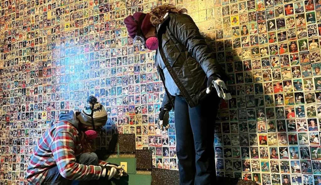 The asphalt roof shingles were an odd choice of wall covering, so she’d braced for just about anything — but seeing row after row of baseball cards from the 1970s and 80s glued to the walls was still a surprise.