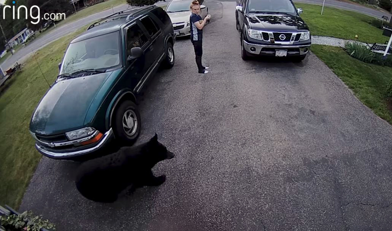 Police shared a video of a bear approaching a girl in the driveway of her home earlier this month, prompting “an overwhelming public response.”