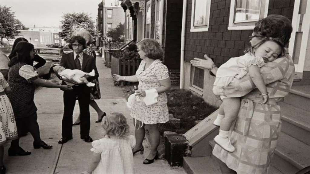 Graves says the conversations she’s had paint a clearer picture of city life in the 1970s and how much has changed. She spoke to the Moran family, who Manos photographed before their daughter’s baptism in South Boston. Despite the joyful and intimate celebration, the family describes a violent and unsafe neighborhood, forcing them to leave a community they once called home.