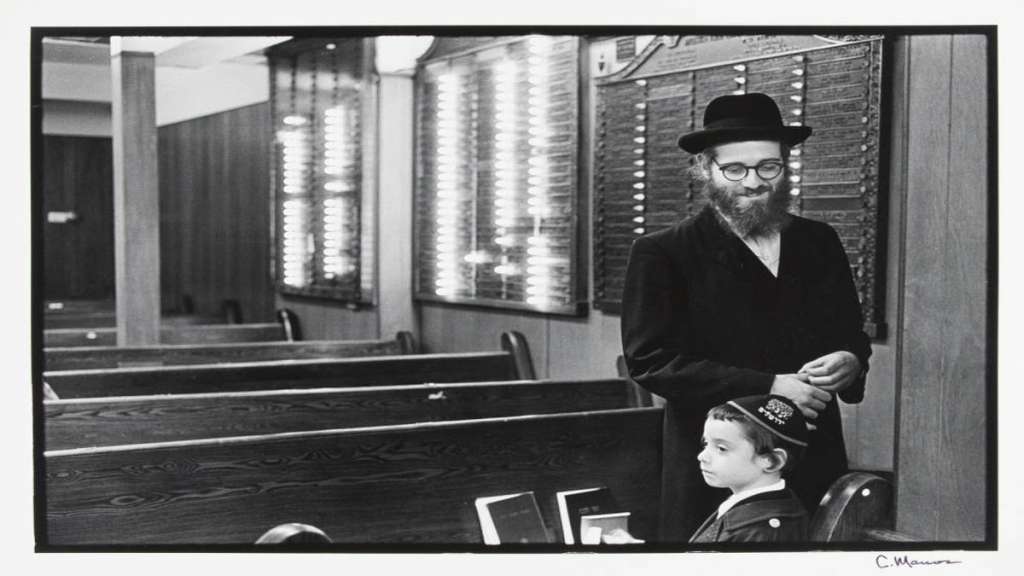 Another photograph in the series of distinct cultural spaces shows a father looking lovingly at his son at the Beth Pinchas Chassidic Center in Brookline. Graves interviewed the young boy pictured decades later, who is now a Rabbi and the director of Hillel at Tufts University.