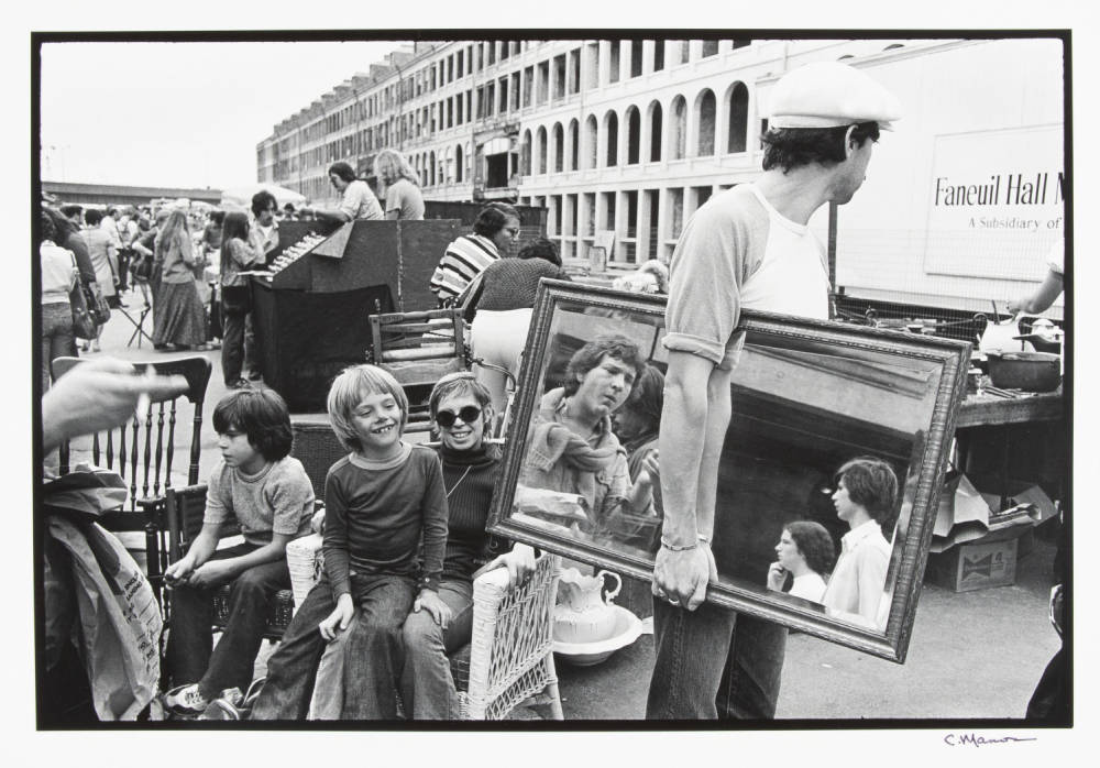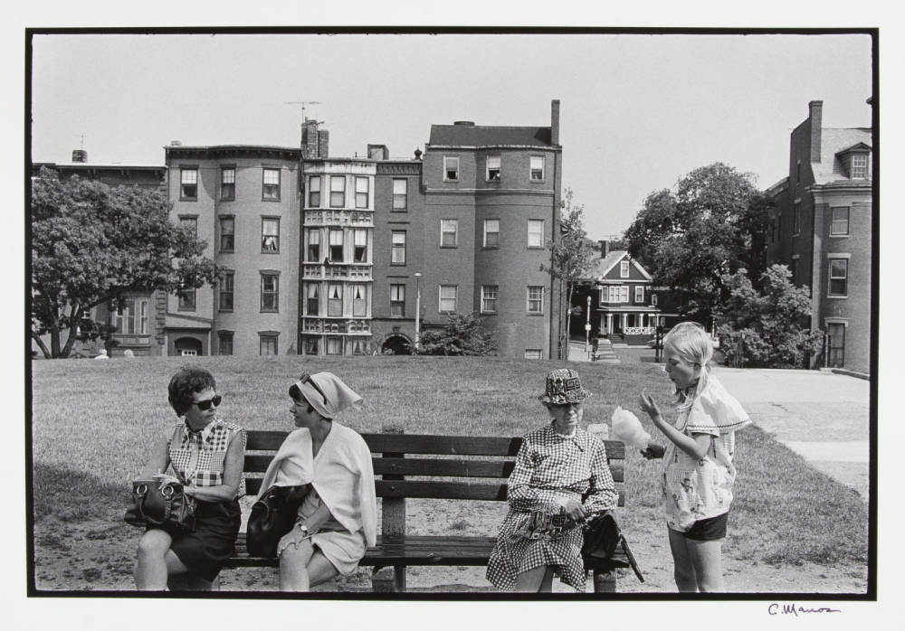 Frame by frame, Manos’ 1975 series “Where’s Boston?” captures a complicated city. The black and white photographs were first displayed as part of Boston’s bicentennial celebration, reflecting the city’s diversity, while also shedding light on its racial and economic tensions. Manos photographed the images in the midst of Boston’s bussing crisis, a period of intense racial conflict stemming from the court ordered desegregation of Boston’s schools.