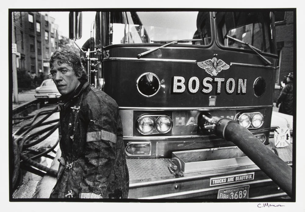 Recording the oral histories provided additional context to correspond with the powerful photographs. For example, Graves says Manos’ seemingly innocuous photo of a firefighter resting against a fire truck after battling a blaze on Symphony Road in Fenway is also rooted in activism.