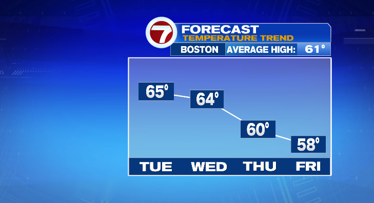 Thursday we have a low-end chance for just a spot shower. Otherwise, it’ll be partly sunny. Lows in the morning will drop to the low 40s with highs near 60 degrees.