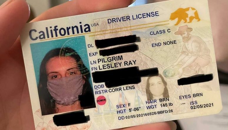 Lesley Pilgrim, 25, was issued an identification card from the California DMV with a photo of her wearing a face mask.