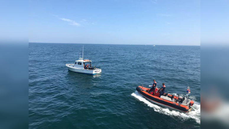 Members of the Coast Guard, the Massachusetts Environmental Police and several good Samaritans responded to reports of a boat taking on water about 15 nautical miles south of Gloucester Harbor.