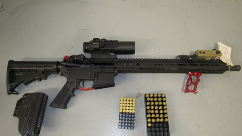 Officers executing a search warrant on July 1 found the assault weapon, ammunition, and other items.
