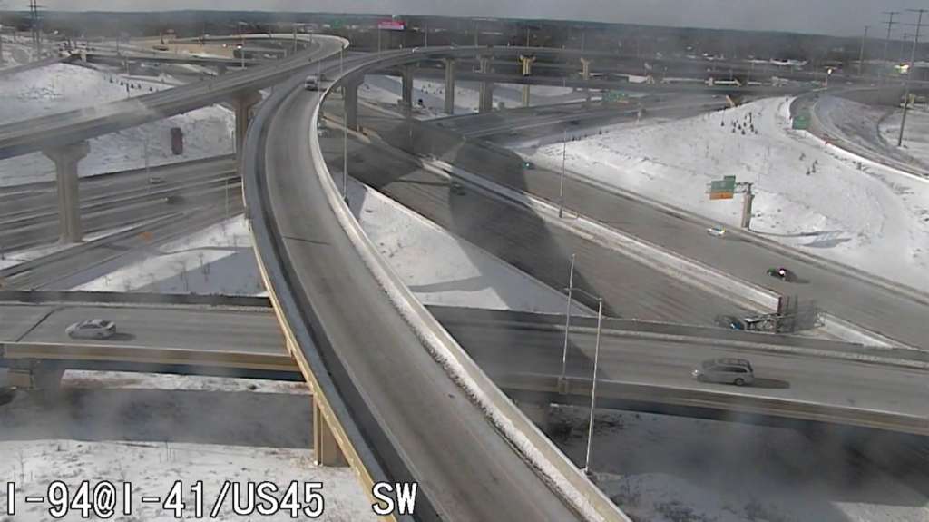 A Wisconsin Department of Transportation camera captured Saturday’s crash in which the pickup can be seen flipping over the a barrier wall and plummeting to the interstate below as cars pass by. The truck landed upright on the right shoulder of the westbound lanes of Interstate 94.