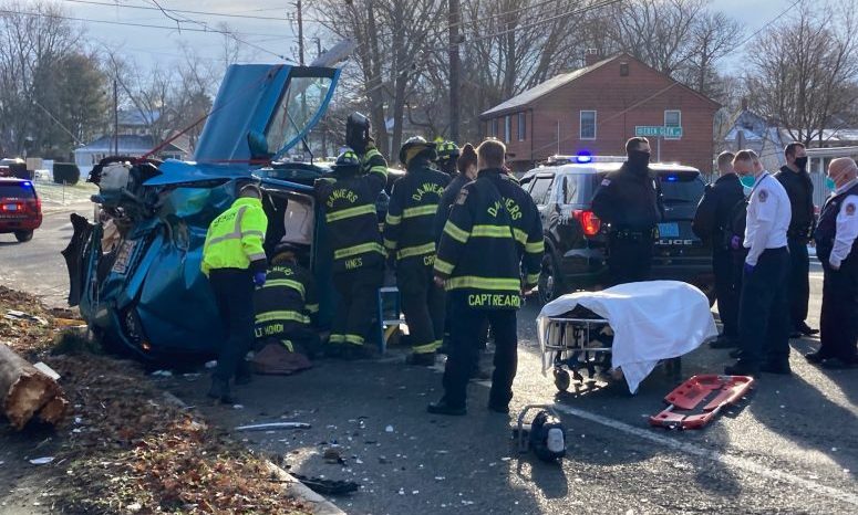 Emergency crews responding to a reported crash in the area of 173 Elliot St. around 9:45 a.m. discovered the woman trapped inside the vehicle, which had rolled onto its side, according to Danvers police.