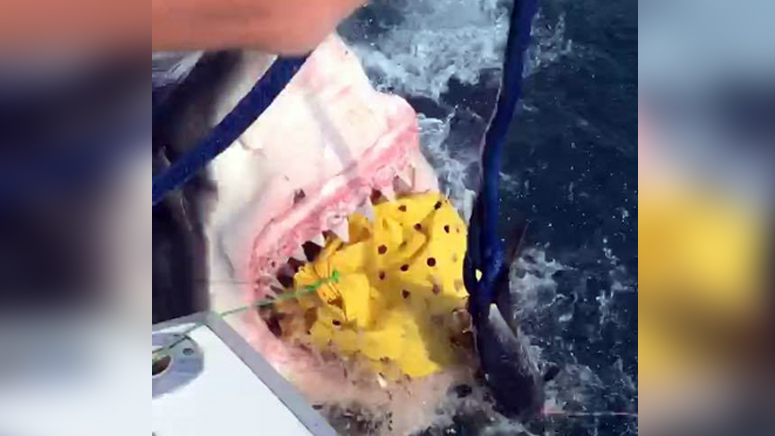 All the crew could do was watch and videotape the encounter before the great white swam off with the bait.