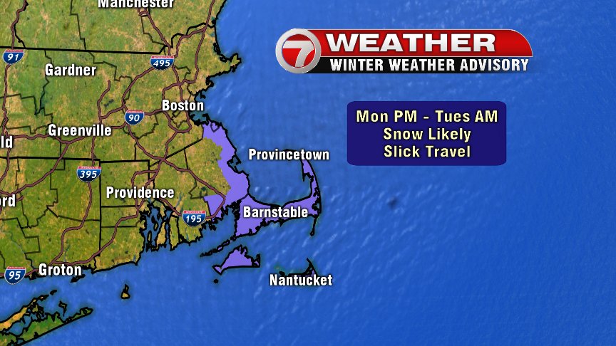Tomorrow’s highs will be close to seasonable averages for this time of year… so it’s “back to normal” to kick off the work week (33-39°). Most of us will have clouds throughout the day (maybe some sun to start well inland) – and we’ll start tracking light rain/snow mix across the Cape and islands by the afternoon/evening hours. The cold air continues to get colder once the sun goes down and any raindrops that are falling at this point will change over to snowflakes. Snow showers continue through the overnight hours and into Tuesday morning, tapering by about midday.