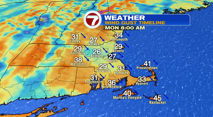 Highs on Monday will top off in the low 40s. The wind will make that only feel like the 30s, though, so again get ready for the chill. Otherwise, skies are looking partly sunny.