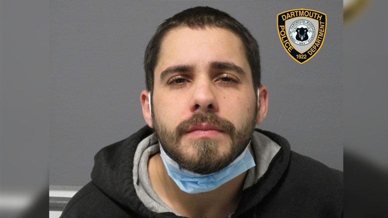 Justin Camara, 25, was taken into custody on a warrant by members of Dartmouth police and the state police Violent Fugitive Apprehension Section around 6 a.m. Wednesday.
