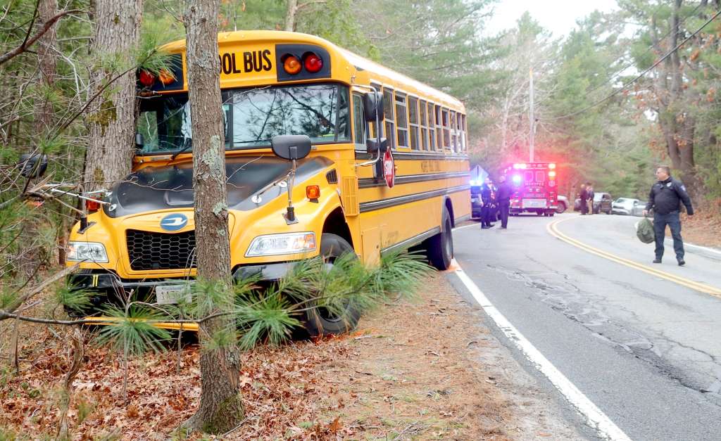 School bus carrying 26 students crashes in Mashpee after driver suffers medical emergency
