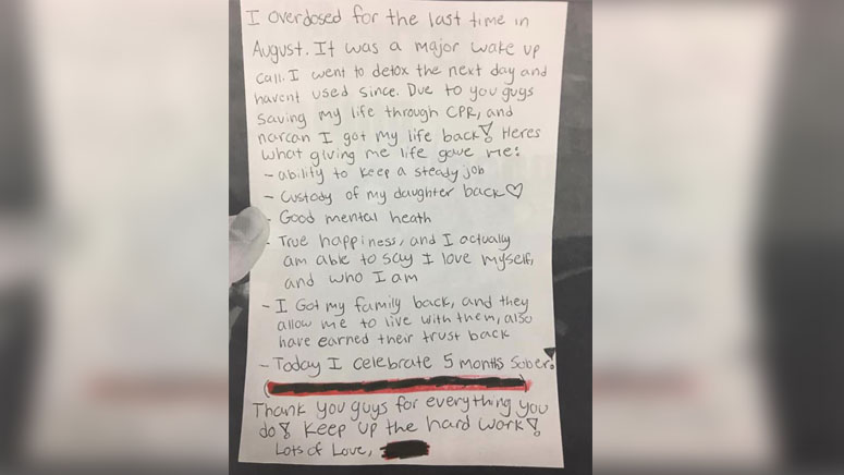 NATICK, MASS. (WHDH) - Natick police took to social media Tuesday to share a note from an overdose victim that they say “makes it all worthwhile.”
