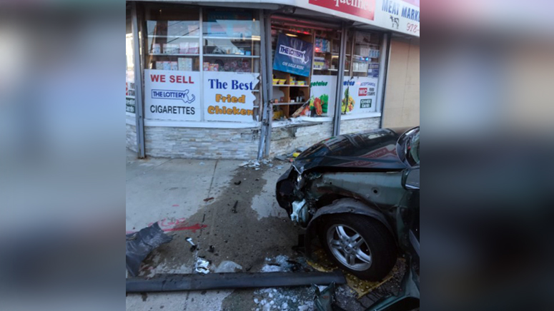 Officers responding to a report of a vehicle into a building near the intersection of South Broadway and Salem Street before 9 a.m. found a pair of damaged vehicles, including one that had struck the front of Jacqueline’s Grocery Store, according to the Lawrence Police Department.