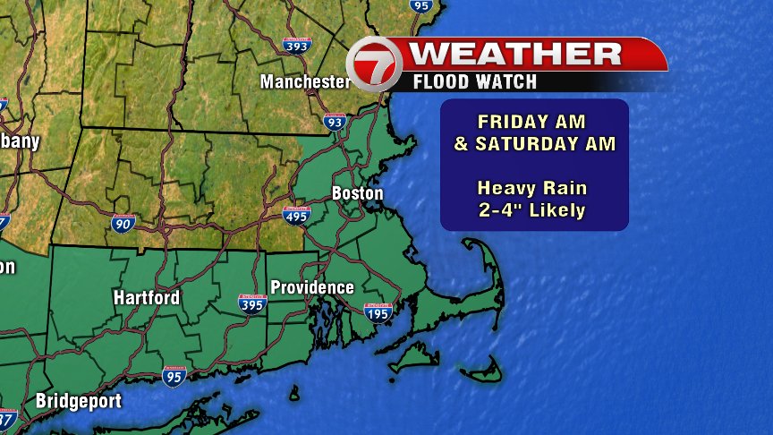 This wind will affect local and regional flights on Friday and Friday Night so plan on air travel disruption for sure. This wind will also be unloading Atlantic moisture in New England throughout the day on Friday into late Friday evening and because of that, we have a flood watch in effect for 2-3″ of rain likely: