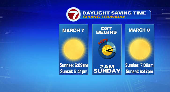 That will continue into Friday morning. The rest of Friday: cloudy with a chance for a spot shower and highs cooler again in the upper 30s. Saturday will be dry, breezy and cloudy but gorgeous near 50 degrees! There’s a chance for some rain showers Saturday night. Don’t forget to set your clocks forward an hour before you to go bed!
