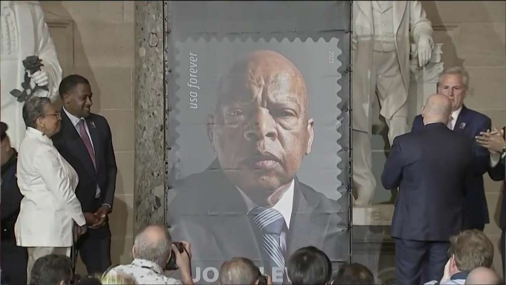 WASHINGTON (AP) — Congressional leaders unveiled a new stamp Wednesday in a Capitol ceremony commemorating former Rep. John Lewis, a civil rights icon who served more than three decades in Congress and died in 2020.