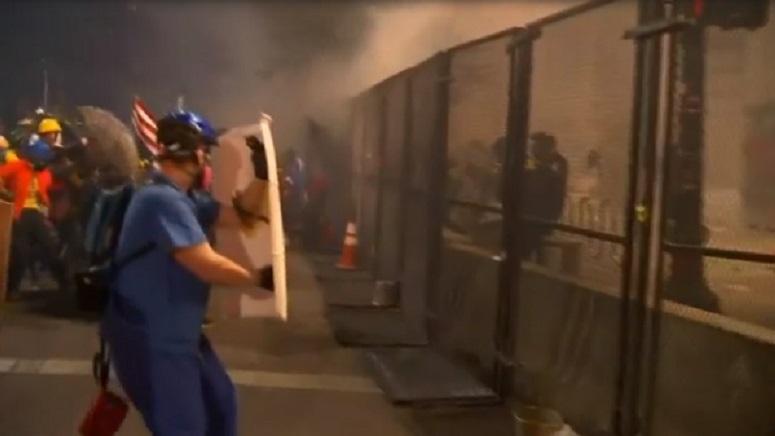 Later, protesters vigorously shook the fence surrounding the courthouse, shot fireworks towards the building and threw glass bottles. Many times these actions were met by federal agents using tear gas and flash bangs.