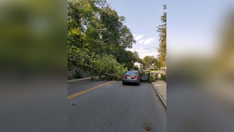 No one was hurt, but the tree knocked out power to about 46 residents on Pleasant Street near the City Hall.