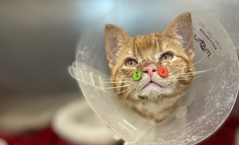 “He has obviously been through and survived a serious trauma, but he has adapted quickly to the sutures that limit the use of his jaw and, through it all, he’s remained an outgoing, playful and really friendly cat,” said Victoria Odynsky, manager at the MSPCA’s Boston adoption center. “We are relieved that we are able to provide urgent medical care for him, and we’re glad to see him recovering so well.”
