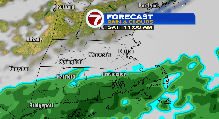 The rain will start across the islands early Saturday morning between 5-6 a.m., with the most widespread rain south and east of the Mass Pike throughout the morning.