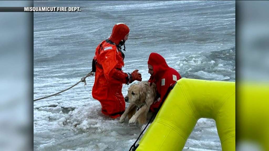 Rhode Island firefighters rescue a yellow Lab from an icy pond on New Year’s Day