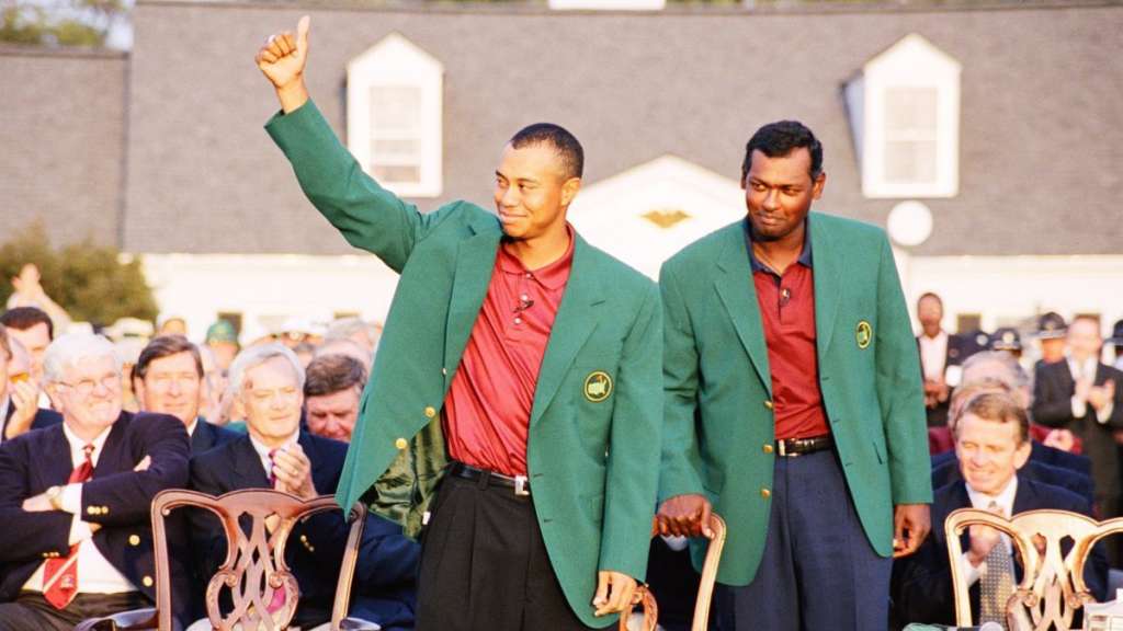 After a grueling four days at Augusta National in 2001, Woods sunk a two-putt to win his second Masters and become the first golfer to hold all four major titles at the same time. He had won the final three majors of 2000 – the US Open, The Open and PGA Championship — before securing victory in Augusta.
