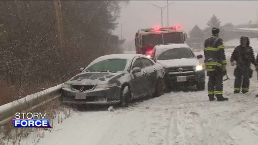 Snow hits parts of central Mass., leading to accidents piling up