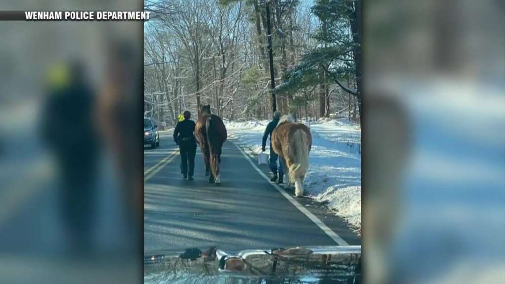 Officers help corral horses that got loose in Wenham
