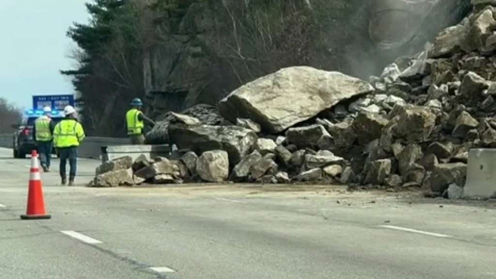 Rocks fall onto I-495 near Wrentham
