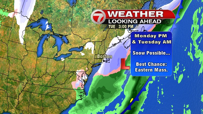 We turn cooler Monday – Wednesday with a glancing shot at some some Monday afternoon into Tuesday morning. If the storm’s close enough, a few inches of snow is possible across eastern Mass. You know the drill, a closer pass = more snow, a track farther east means we don’t see much. We’ll keep an eye on it, but doesn’t appear to be a blockbuster around here. Certainly nothing like that storm we had 3 years ago!