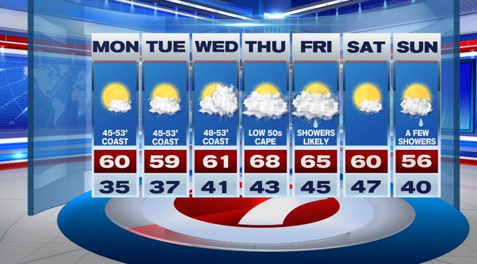 Wednesday brings increasing clouds with a northeast breeze keeping the coast in the upper 40s to low 50s, low 60s inland.
