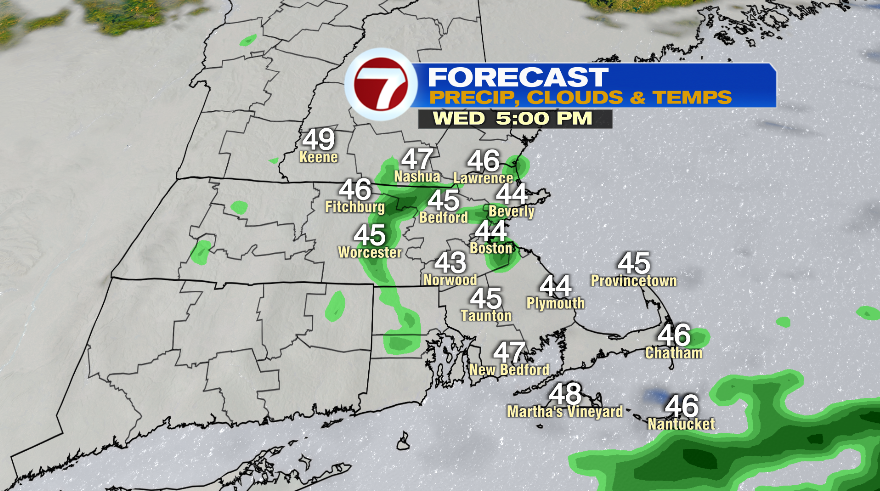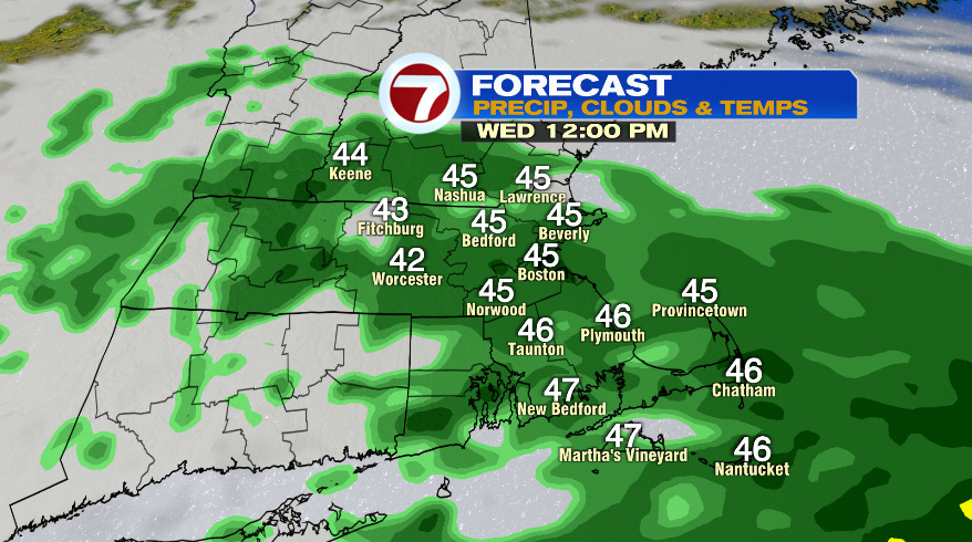 Grab the rain gear Wednesday. The day starts with steady, light rain and temperatures in the low 40s. We don’t move much from there with highs in the mid 40s. Steady rain continues through 2-3 PM, and then we’re left with patchy fog and areas of drizzle throughout the rest of the afternoon and evening.