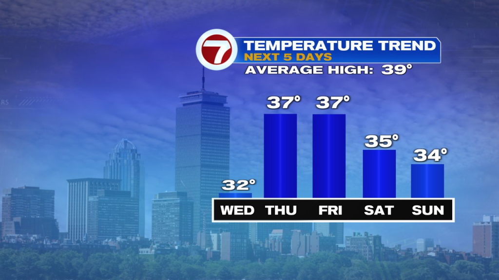 30s for highs and teens and 20s for lows will be a common theme through the 7day. The pattern looks mainly dry through the weekend as a storm looks to stay south of us Saturday, perhaps throwing just a few flurries or snow showers our way.