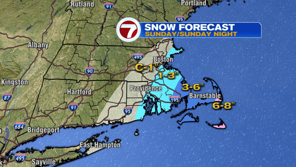 Overall, the best shot of at least a few inches of snow is far Southeast Mass, especially across the Cape and Islands, where a winter storm watch is up. Snow totals expected are below.