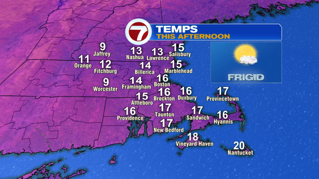 That wind has a bite to it this morning as winds chills run -10 to -20 for many. Air temps hover in the single digits with the clear skies and brisk breeze in place. It’ll be dry today and breezy with the frigid air hanging around as highs only recover into the mid teens and wind chilly getting back close to 0.