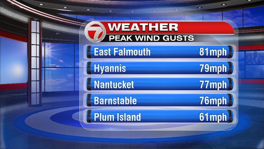 The winds cranked across the coast too, with gusts past 70mph common over the Cape and Islands. That, in combination with the heavy snow, led to widespread power problems again for South Shore and Cape towns.