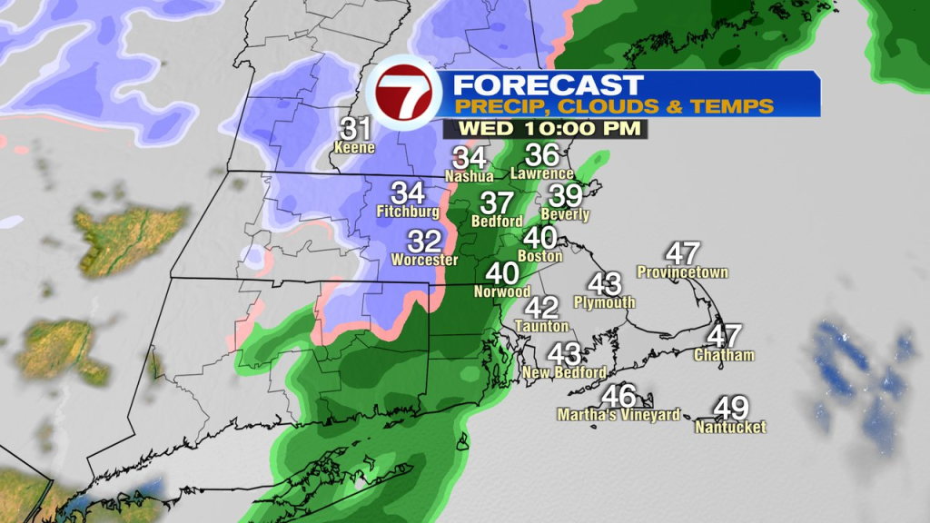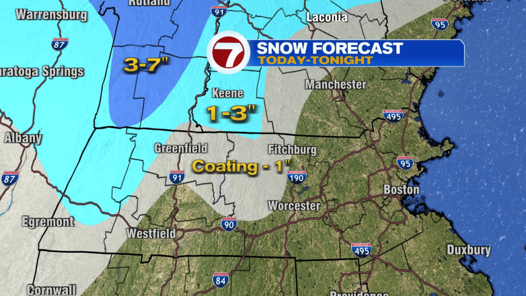 In the higher terrain, light rain changes to some wet snow this evening before tapering off. Accumulations will be limited, but a coating to an inch of snow is possible in the hills of central and northern Worcester County.