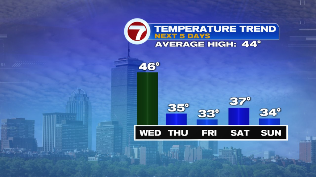 The weekend is chilly, with highs in the 30s. Although no major storms are in the works, a few scattered snow showers are possible at times both Saturday and Sunday. We’ll watch that wave of low pressure close to us Sunday. If it does move a bit farther north, snow would be a bit steadier and more widespread. Something to at least keep an eye on.