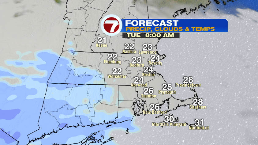 There won’t be any melting on Monday. Watch out for slick spots on untreated surfaces in the morning with temperatures starting in the teens. Highs make it into the mid and upper 20s and there will be a mix of sun and clouds.